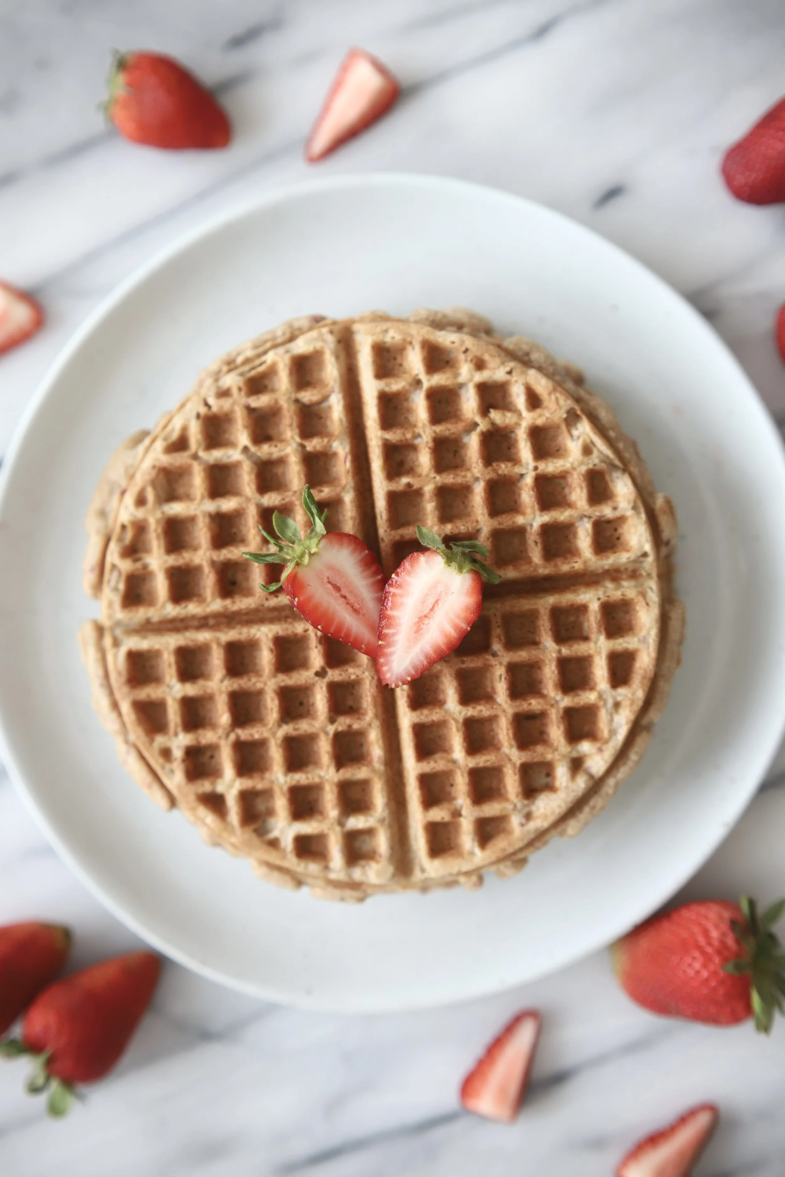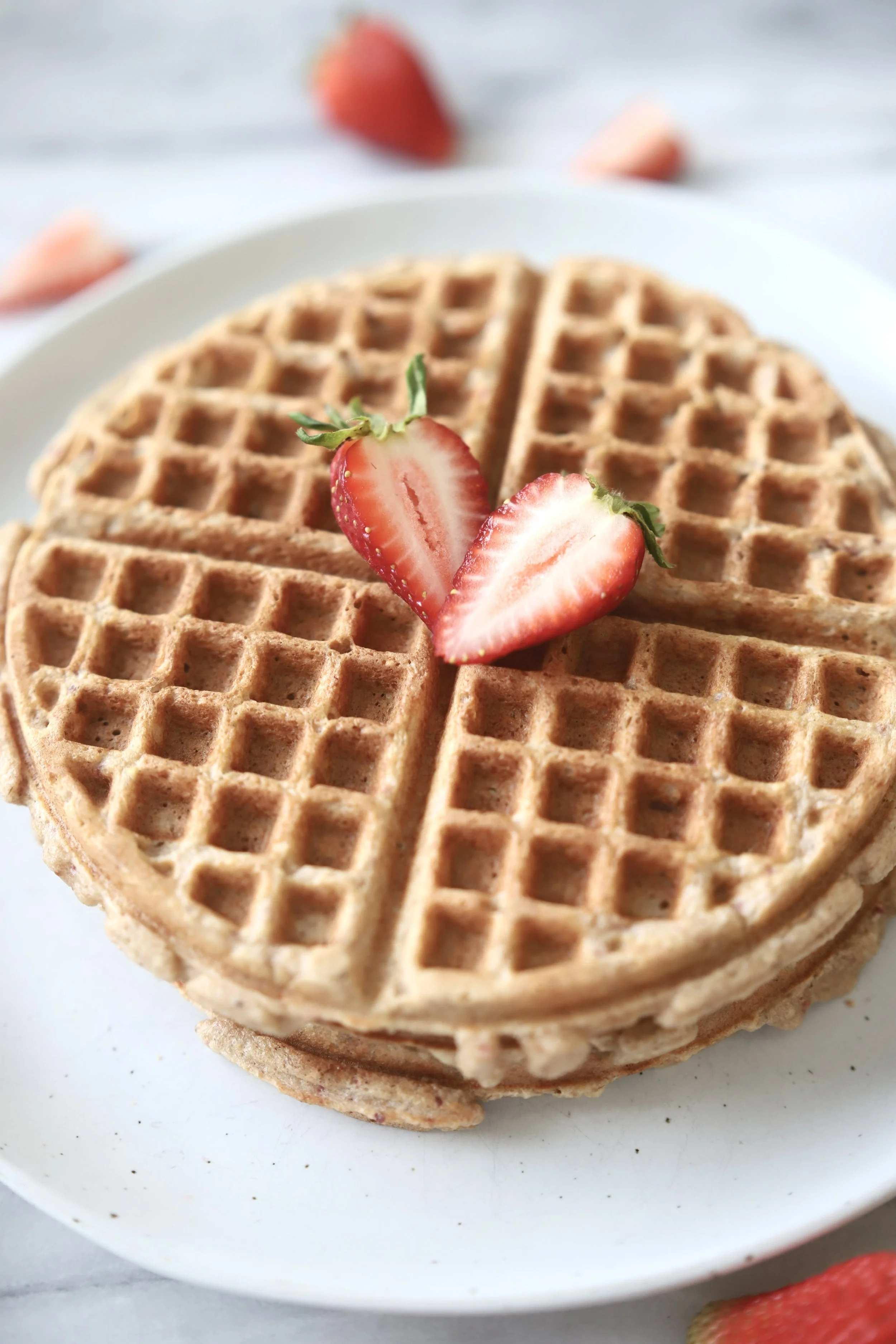 - To serve, drizzle with maple syrup and chopped strawberries! Enjoy! - Note: you can make this waffle recipe without using the freeze dried strawberries if you don’t have them on hand. I recommend making the recipe the same way, but adding 1/4 teaspoon of cinnamon in addition to the other dry ingredients. - Recipe by: The Heaping Harvest (adapted originally from Cookie and Kate)
